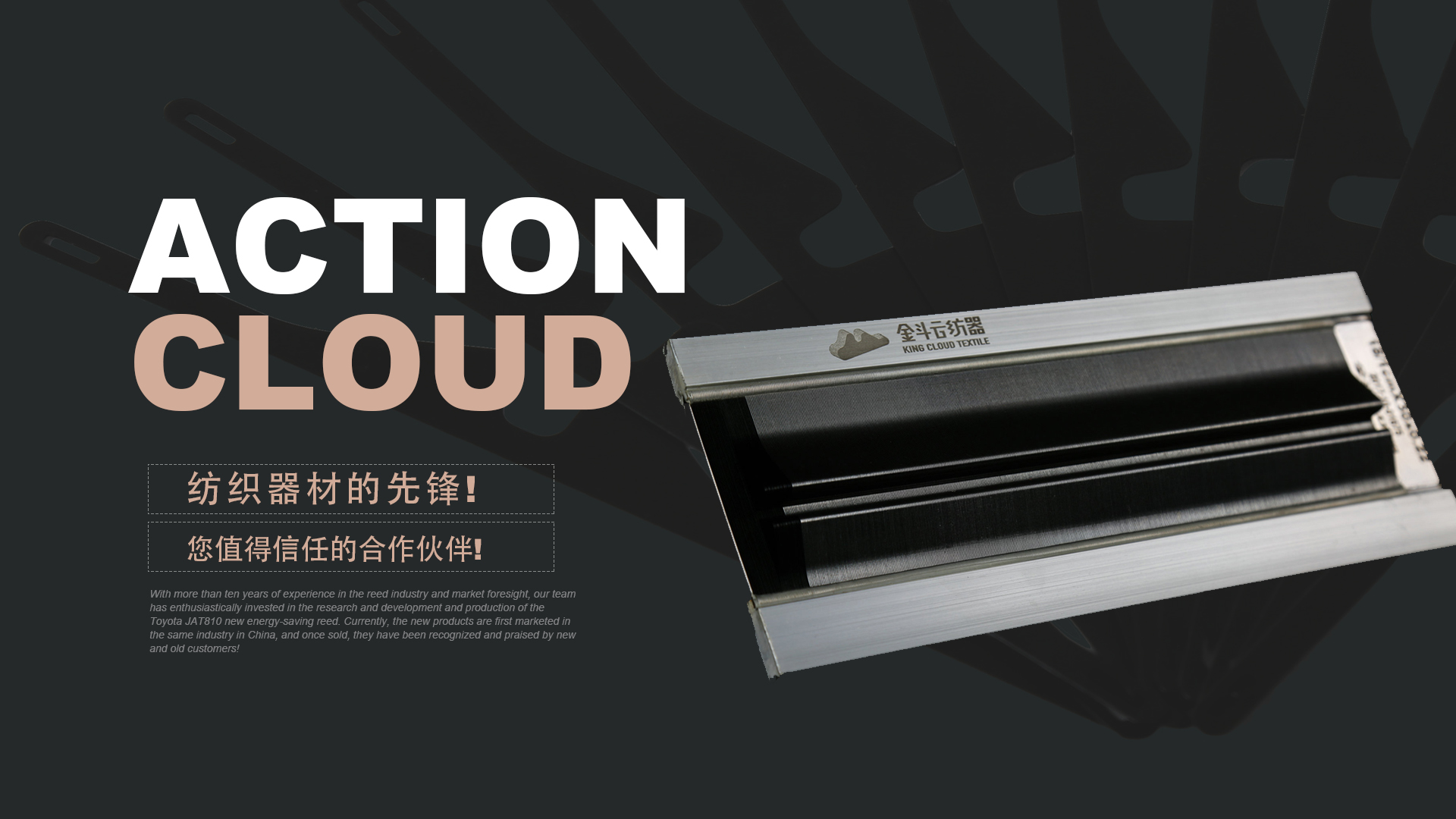 憑借十多年鋼筘行業(yè)經(jīng)驗(yàn)及對市場的前瞻性,我們團(tuán)隊滿懷熱情的投入到豐田JAT810新型節(jié)能鋼筘的研發(fā)和生產(chǎn)當(dāng)中,目前新產(chǎn)品在國內(nèi)同行業(yè)中先行上市銷售,一經(jīng)銷售就得到了新老客戶的認(rèn)可和好評!